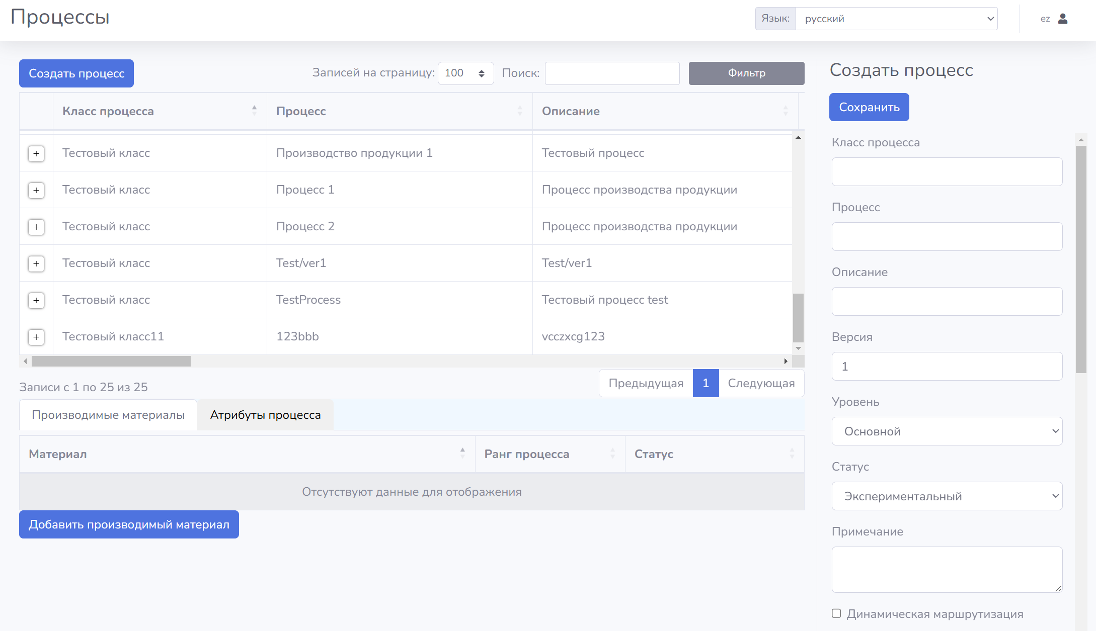 Для создания нового процесса необходимо воспользоваться кнопкой «Создать процесс», после чего в контекстном окне внести необходимые данные. Для каждого процесса необходимо указать: