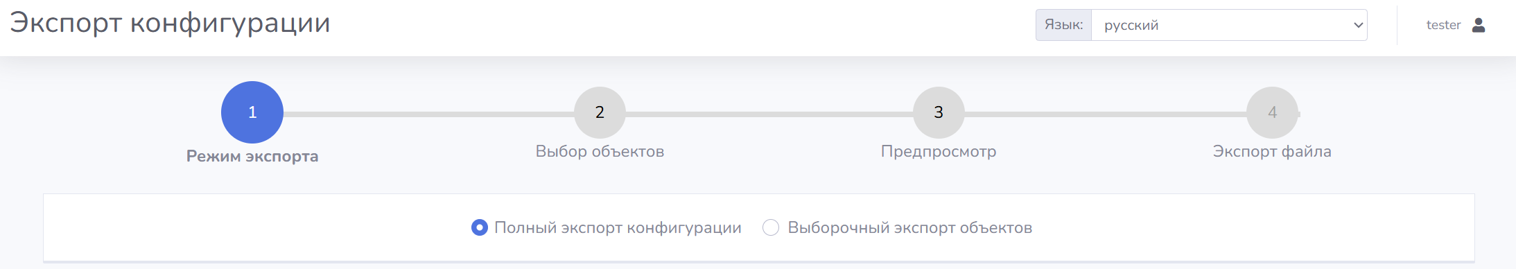 Экспорт конфигурации может быть быть выполнен в двух режимах: