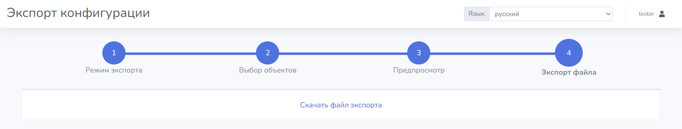 Для получения файла экспорта необходимо перейти к шагу 4 «Экспорт файла», затем необходимо нажать на ссылку «Скачать файл экспорта»: