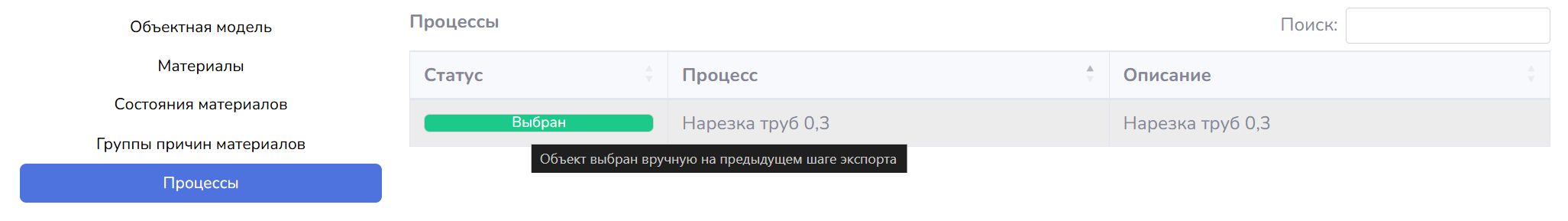 - «Выбран» - объект был выбран на шаге 2 «Выбор объектов»;