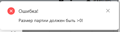 Размер партии должен быть больше 0. В противном случае будет сформировано сообщение об ошибке и запись не сохранится.