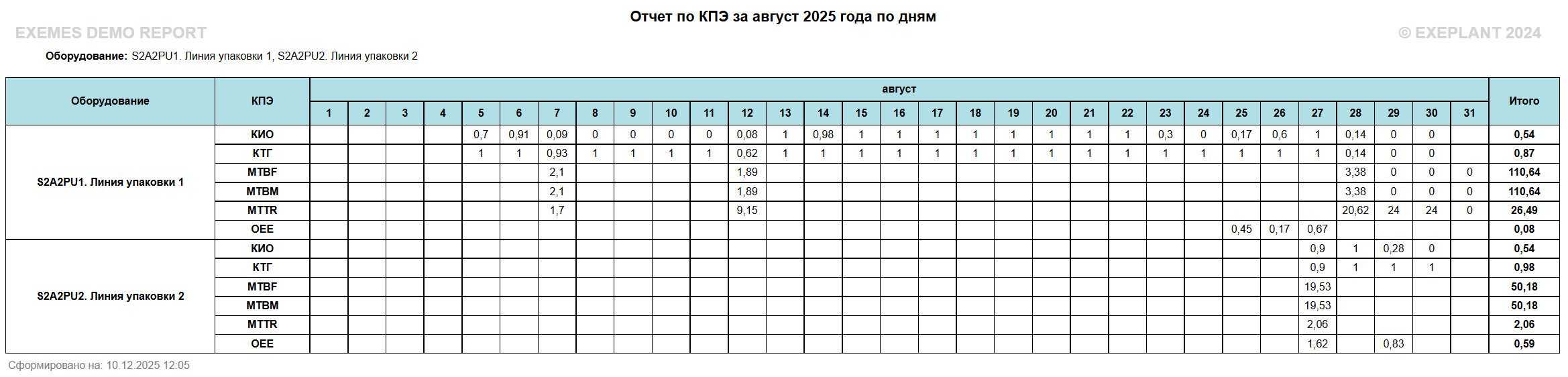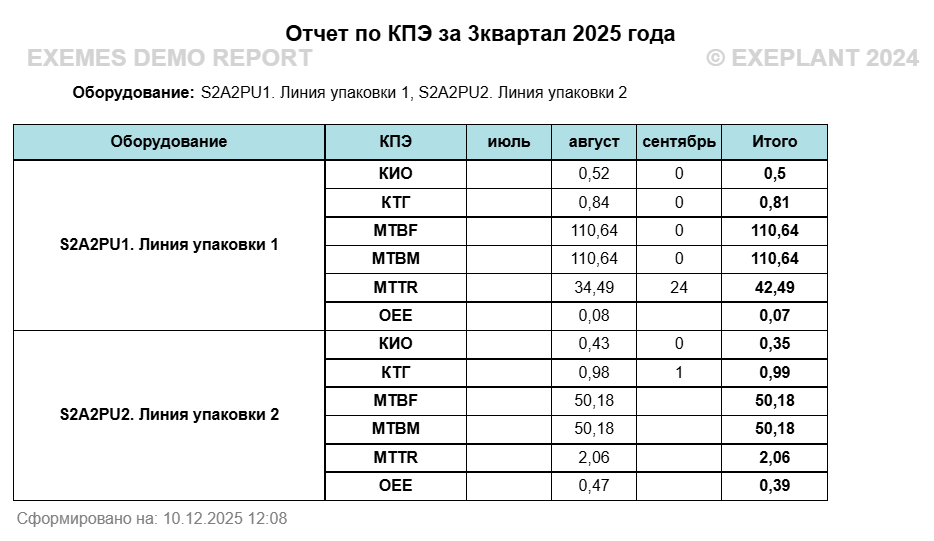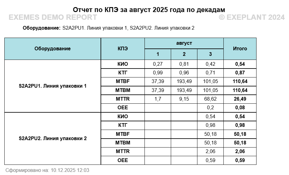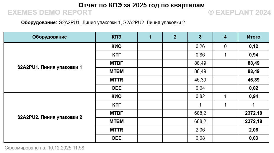 Отчет используется для анализа ключевых показателей эффективности оборудования, с разбивкой: