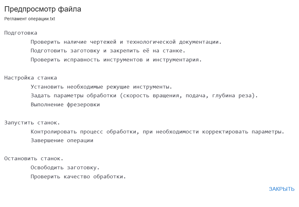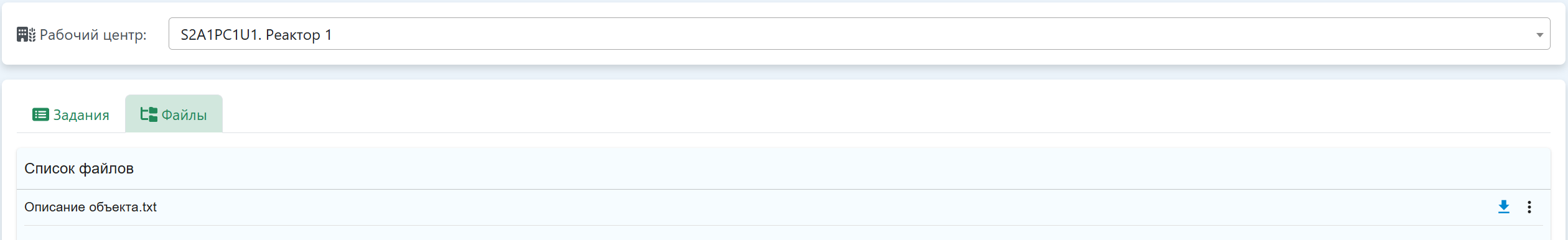 Панель оператора предоставляет возможность работы с файлами, которые прикреплены к рабочему центру, производственному заказу или заданию.