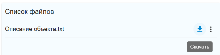 Для скачивания файла необходимо выбрать нужный файл в окне работы с файлами и нажать на кнопку скачивания файла :