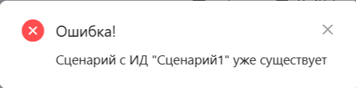 Идентификатор сценария должен быть уникальным, при попытке создания сценария с уже существующим идентификатором появится соответствующее сообщение об ошибке: